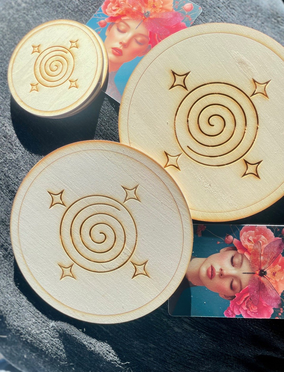 Energijski podstavek za lonce, krožnik ali ritualne predmete z graviranim simbolom zdravja.